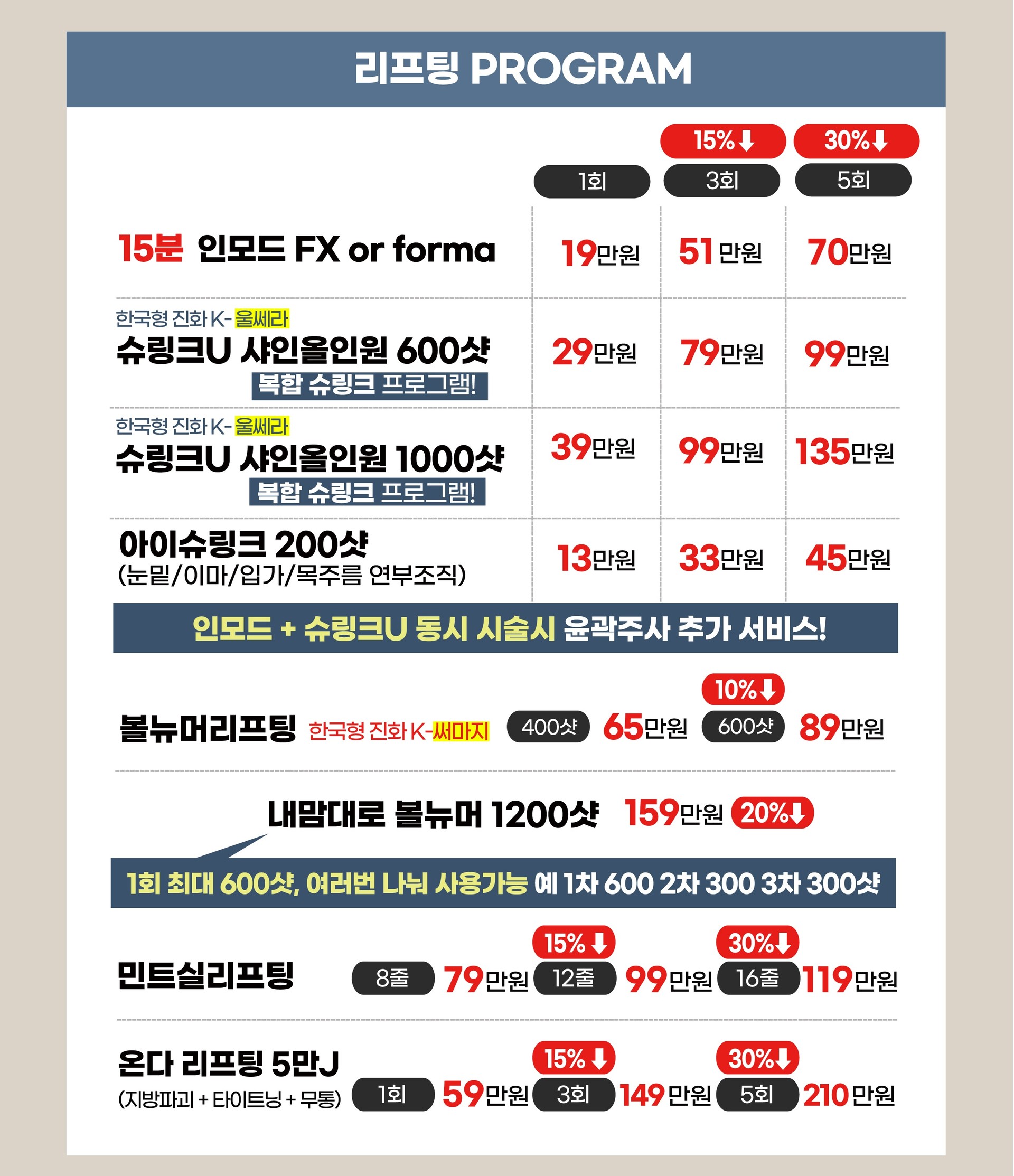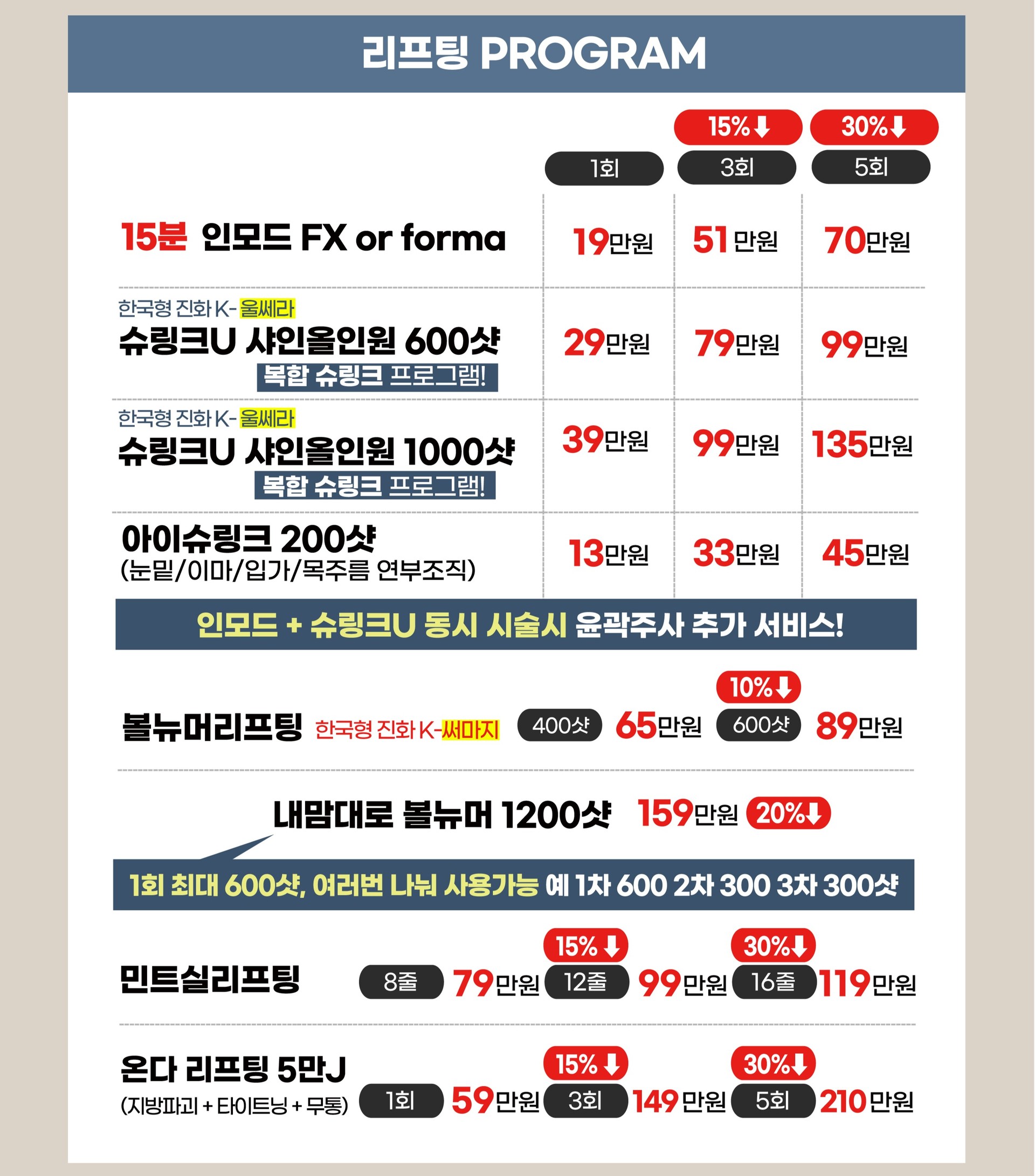 리프팅(인모드, 슈링크 유니버스, 실리프팅)