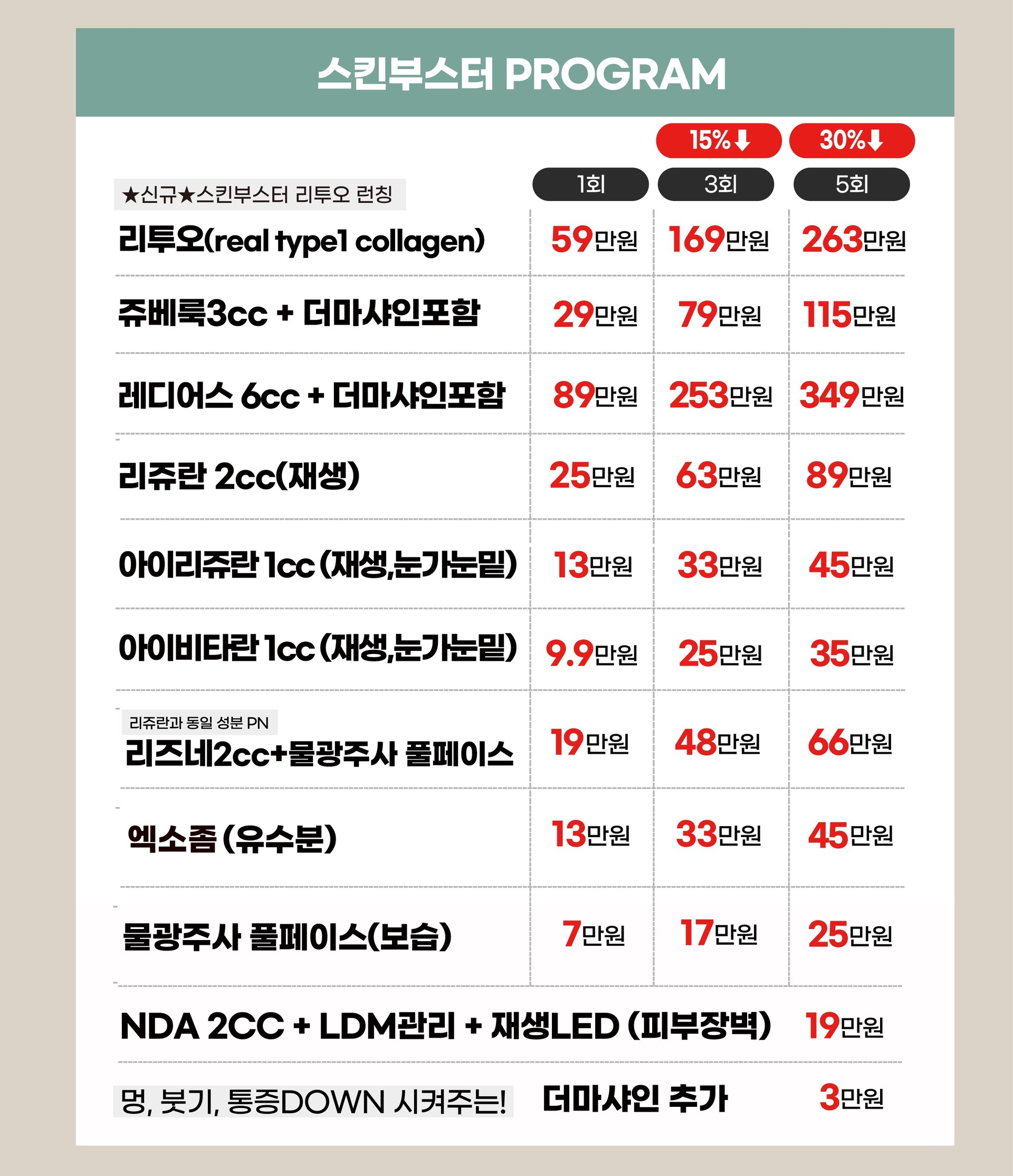 스킨부스터(리쥬란, 아이리쥬란, 5세대엑소좀, 물광주사, NDA)