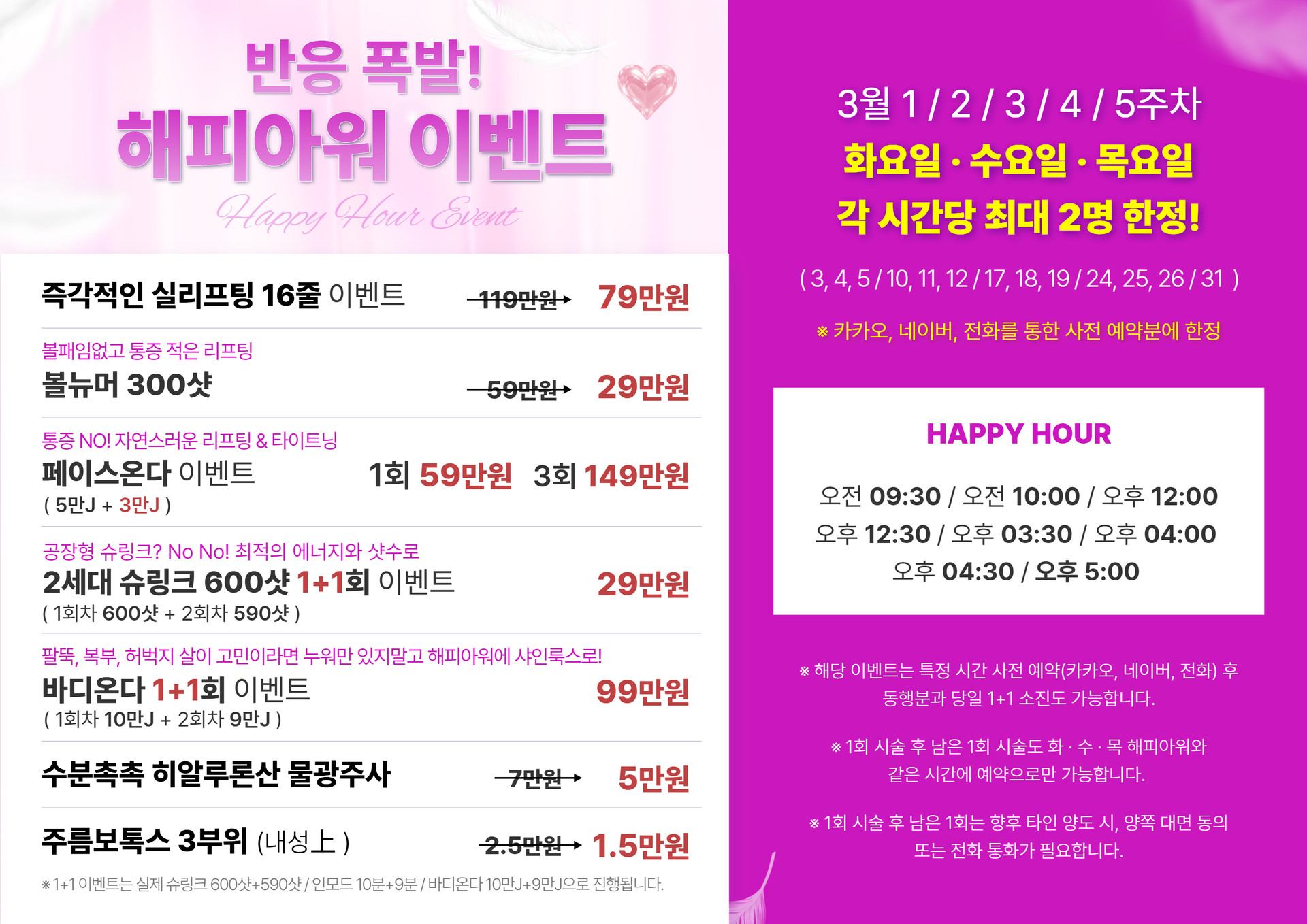 보톡스(주름, 턱, 침샘, 입꼬리, 풀페이스, 승모근, 다한증)