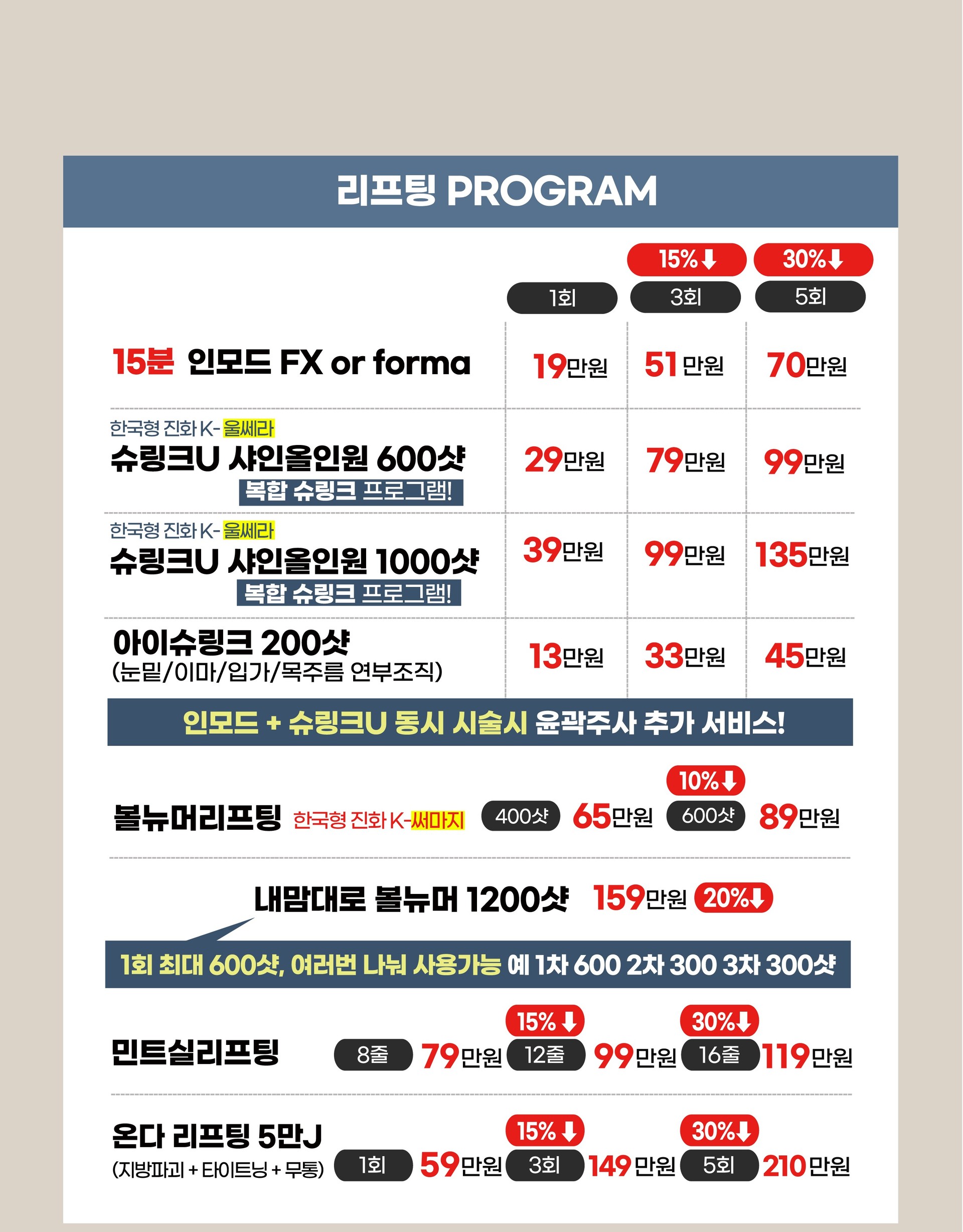 리프팅(인모드, 슈링크 유니버스, 실리프팅)